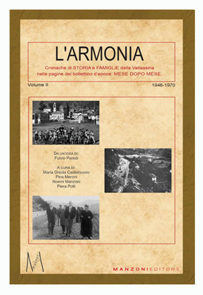 È sempre difficile eguagliare, con il secondo volume, l’interesse ottenuto da una prima pubblicazione. Cambiano le date, e i fatti narrati, ora più vicini, sembrano perdere l’interesse del dato storico. Eppure quante cronache ci sono ancora da scoprire e, per molti, da ricordare! Il tempo si contrae e le immagini assumono i colori della giovinezza di chi quegli anni ha vissuto. I protagonisti diventano più vividi e hanno i nomi di nonni, genitori e — perché no? — anche di chi legge, e sono nomi che ci ricordano di nascite, comunioni, matrimoni, e inevitabilmente di morti, ma anche dei nostrani campioni nel foot–ball e nello sci, degli artisti nelle filodrammatiche o nelle bande locali e dei volontari durante le innumerevole feste; non sarà dunque eccessivo dire che chiunque, in questa seconda antologia dell’Armonia, potrà trovare almeno uno scampolo della propria storia di famiglia.